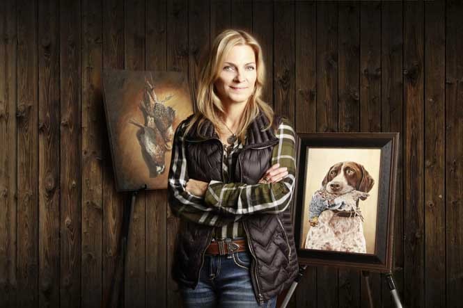 Leah was introduced to American Field Horseback Field Trails and has been able to experience the excitement of seeing her own dog, competing for the National Championship at Ames Plantation in Grand Junction, TN ...standing on point, head and tail held high. This has inspired her to create works of art depicting dogs and the wildlife associated with the sport and hunting.